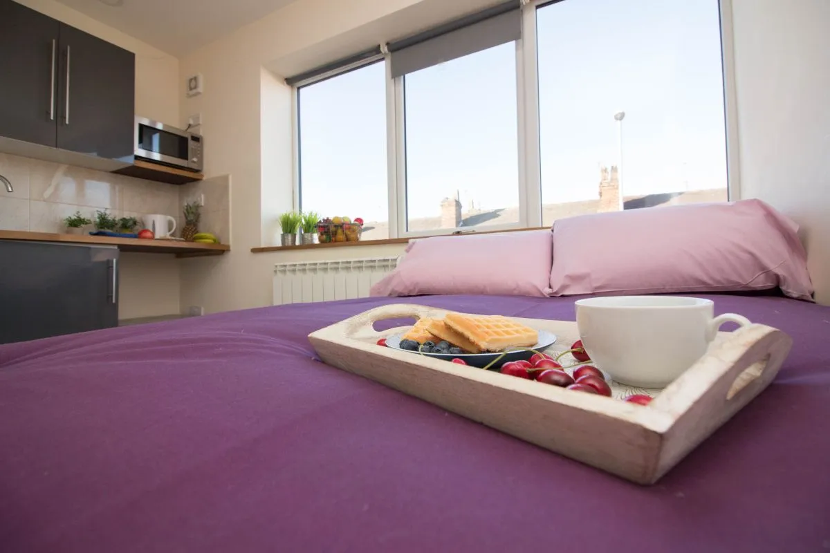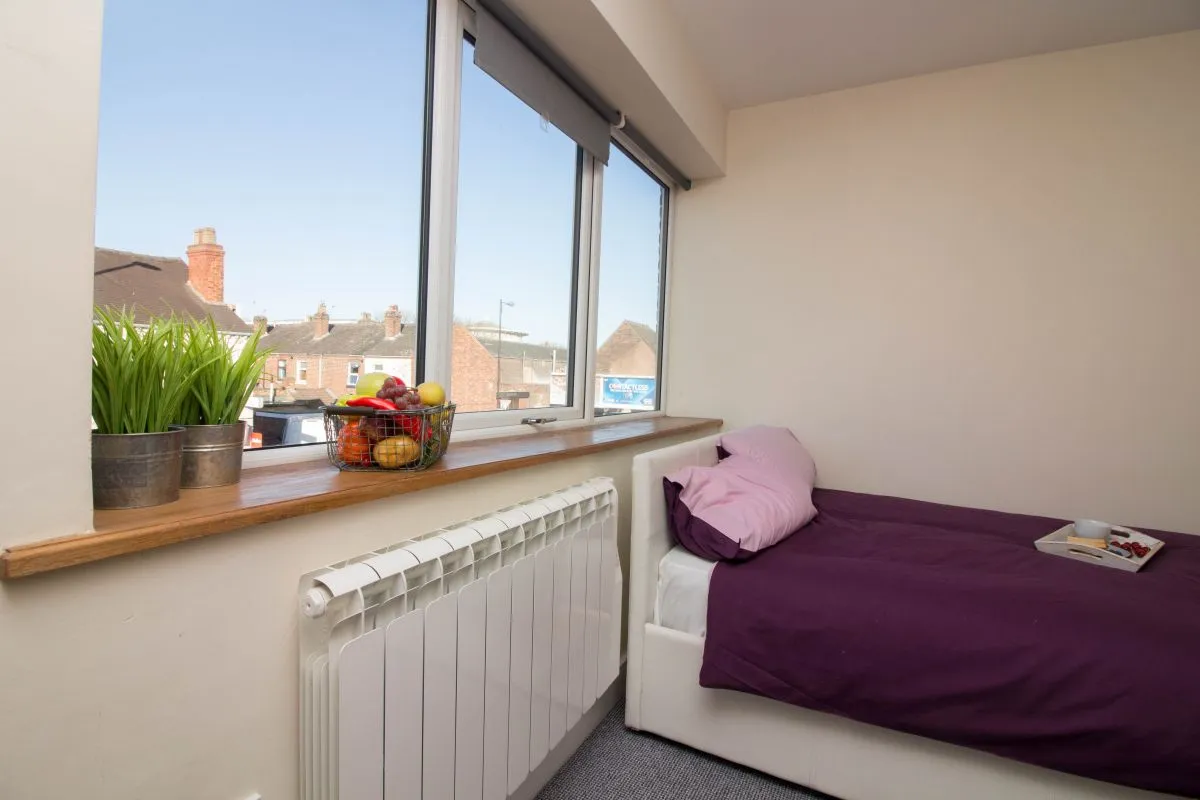 Welcome to Studio 16 at Sovereign House, a thoughtfully designed living space that balances efficiency with comfort. This cozy studio offers a practical layout for single occupants seeking their own private retreat in Stoke-on-Trent, with everything you need within easy reach.